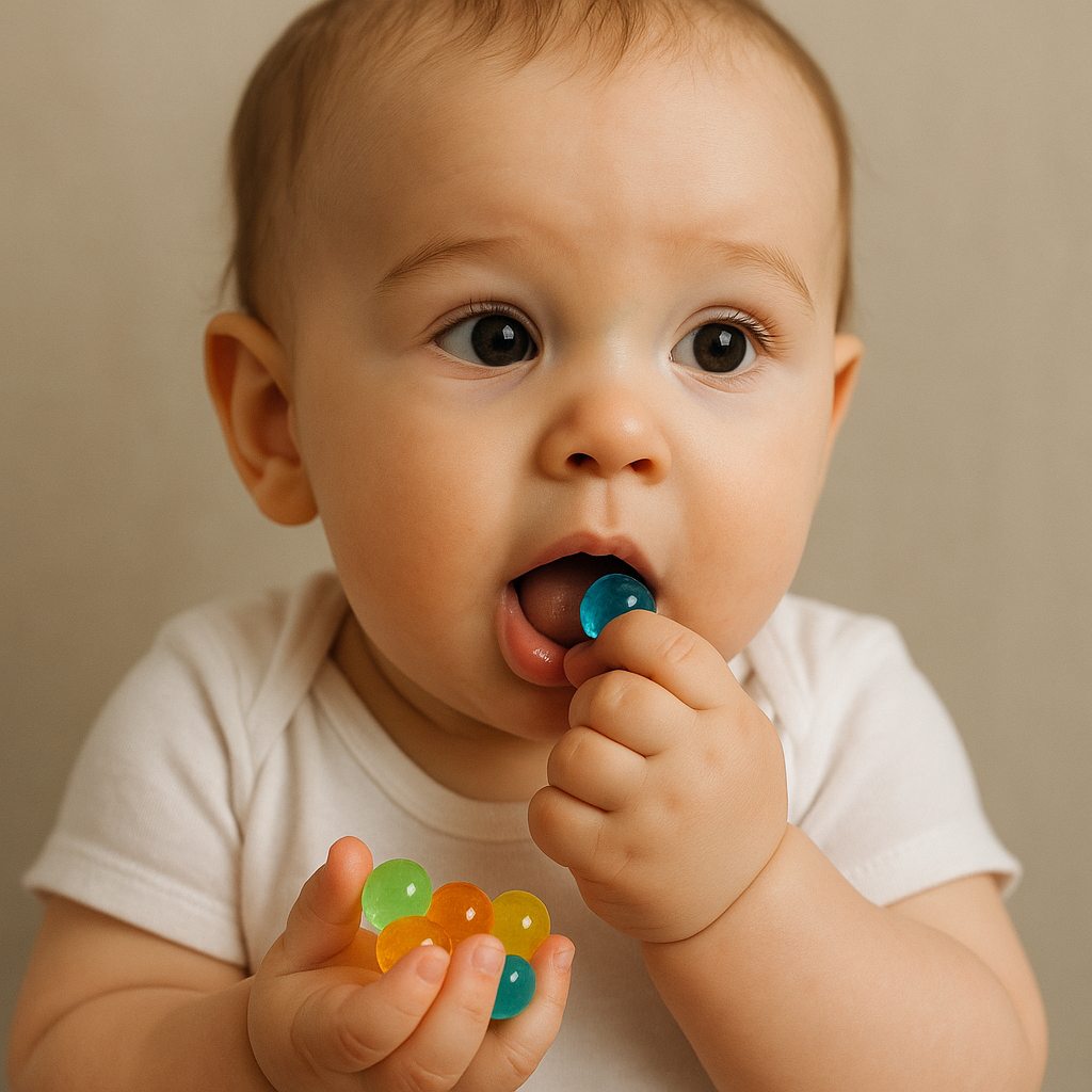 가장 흔한 사고는 삼킴(44.1%)과 귀·코 삽입(54.9%)입니다. 수정토를 삼키면 체내에서 수분을 흡수해 팽창하게 되고, 이로 인해 장폐색 같은 심각한 문제가 발생할 수 있어요. 미국에서는 실제로 10개월 영아가 수정토를 삼킨 뒤 장폐색으로 사망하는 사고도 있었습니다. 우리 집에서 일어나지 않을 거란 방심, 이제는 금물입니다.